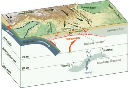 - ↑ Fig. 5 in Jikun Feng, Huajian Yao, Ling Chen, Weitao Wang, Massive lithospheric delamination in southeastern Tibet facilitating continental extrusion, National Science Review, Volume 9, Issue 4, April 2022, nwab174, https://doi.org/10.1093/nsr/nwab174