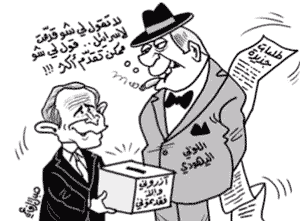 14 KB | In the Jews' left pocket: "The US economy". Bush is inserting to his right pocket the "US future". Al-Watan, August 10, 2003 | 1 |