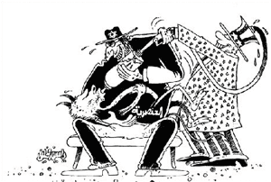 14 KB | Sharon is saying to Bush: "Join me for some Iraqi blood. Let me use balsam shampoo". Ad-Dustur, April 20, 2004 | 1 |