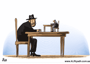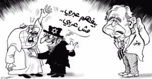 9 KB | The Jew is saying to the Arab on the left: "He understands Hebrew, not Arabic," while pointing at Bush. Al-Watan, March 1, 2004 | 1 |