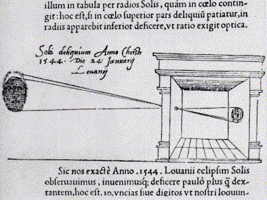 The first published picture of a pinhole camera - a drawing in Gemma Frisius' De Radio Astronomica et Geometrica (1545)