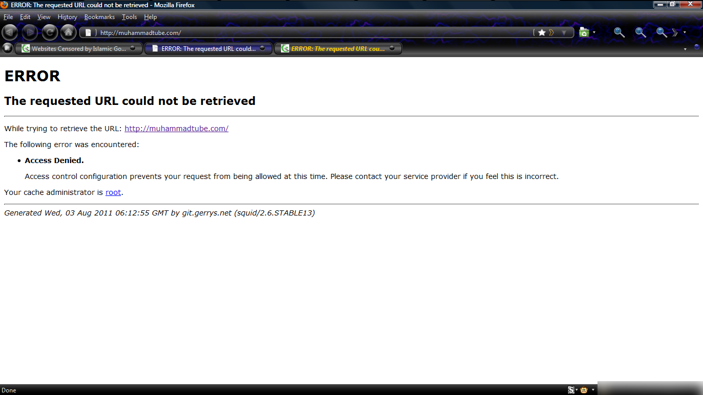 muhammadtube.com is currently blocked in Pakistan. screenshot taken 3rd August, 2011.