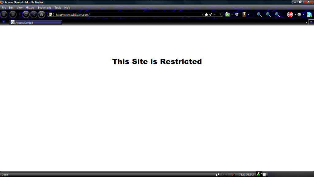 WikiIslam blocked in Pakistan. 12th December, 2009 Screenshot